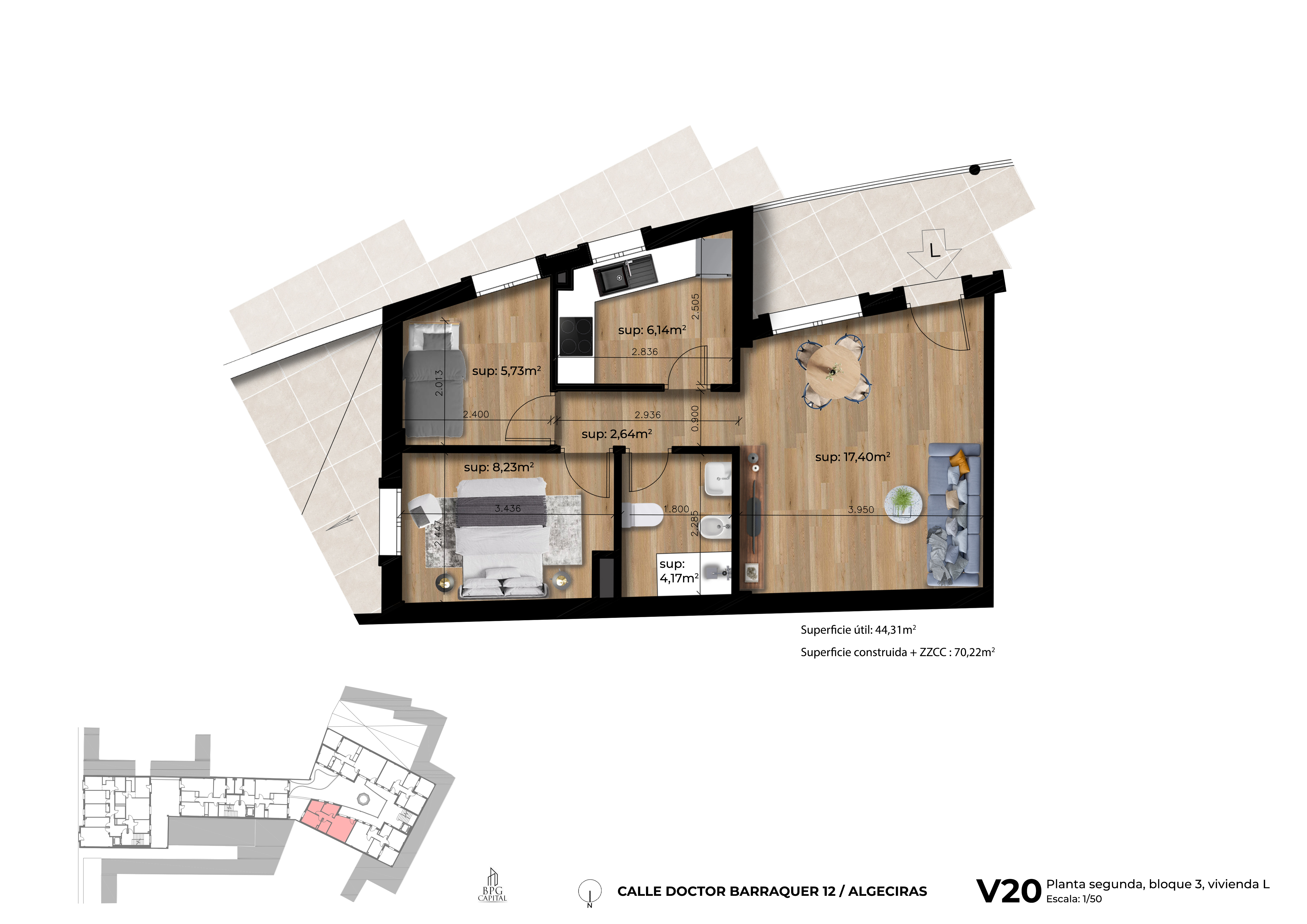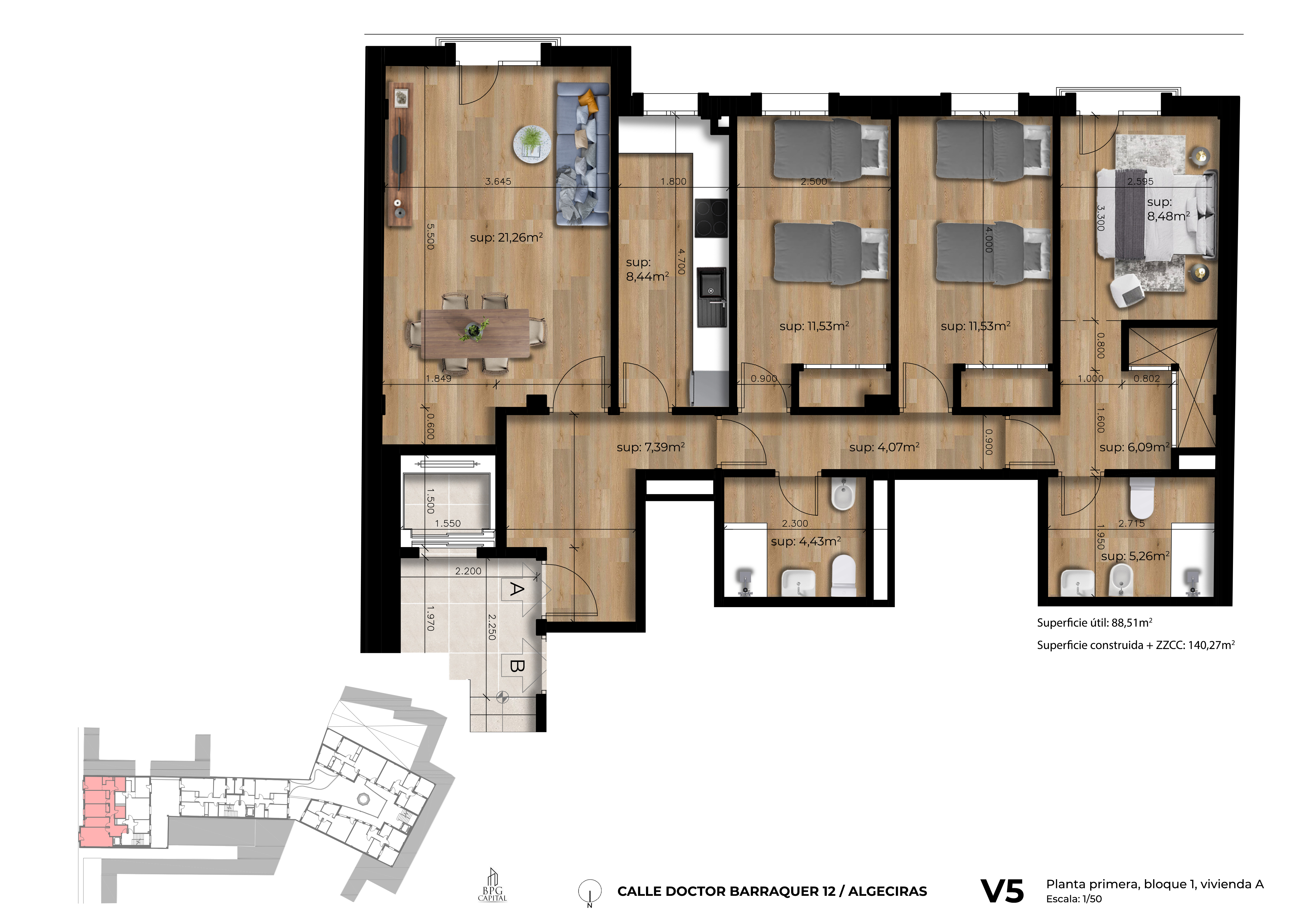 Vistas al Sur pone a la venta Residencial Barraquer, promoción exclusiva promoción de viviendas de obra nueva situada en pleno centro de Algeciras, en un entorno urbano consolidado que ofrece acceso inmediato a todo tipo de servicios, comercios, centros educativos, sanitarios y conexiones de transporte.